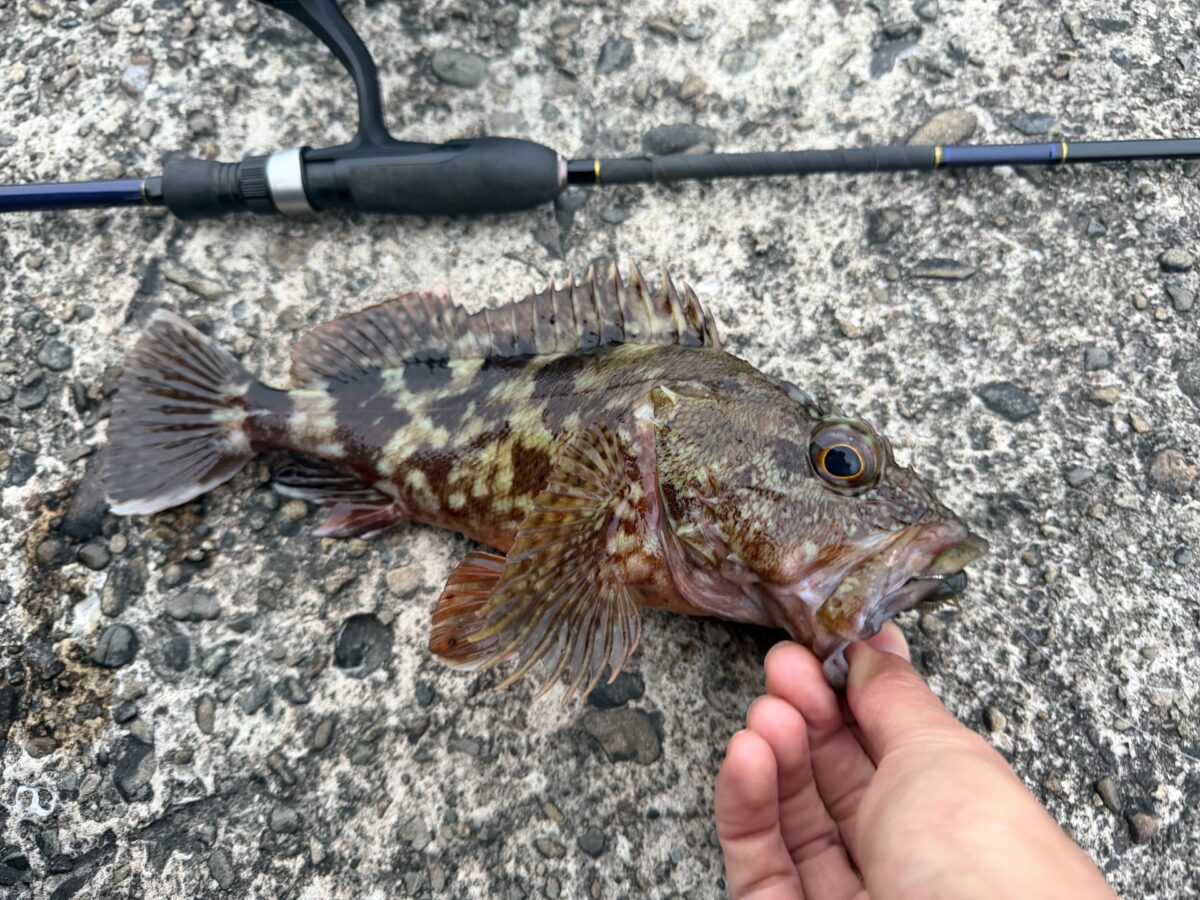 開始二投目でグッドサイズのカサゴ。25cmぐらいかな。